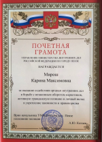 Поздравляем студентку первого курса кафедры АИиУС Мирош Карину с вручением почетной грамоты УМВД РФ за активную гражданскую позицию и вклад в укрепление...